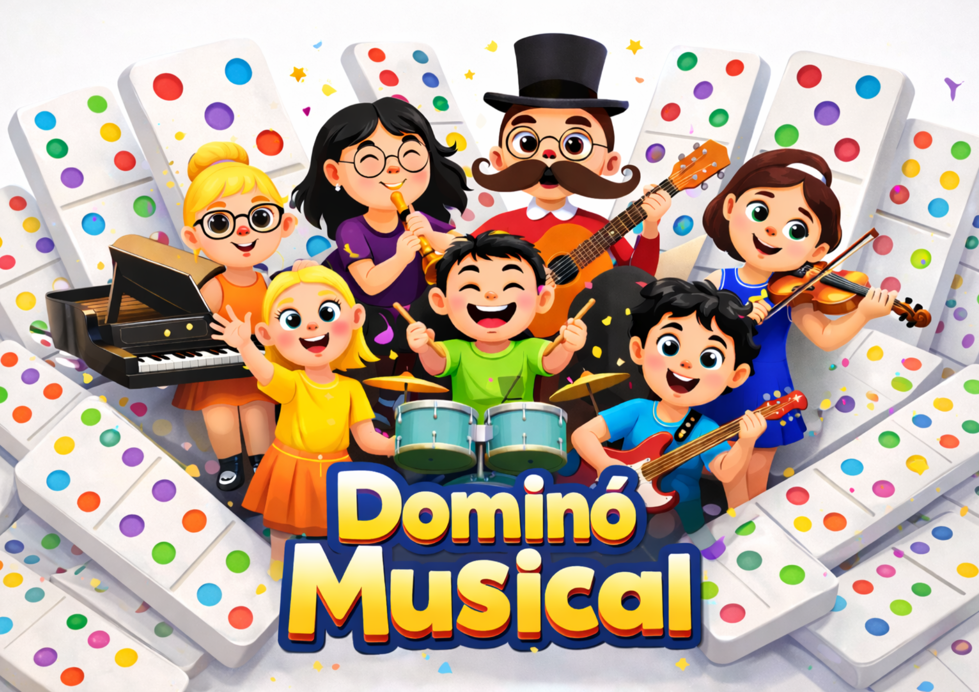 Um jogo musical com as cores e os personagens da família musical para trabalhar notas musicais. Uma diversão garantida para as crianças pensarem em grupo e desenvolver habilidades musicais.